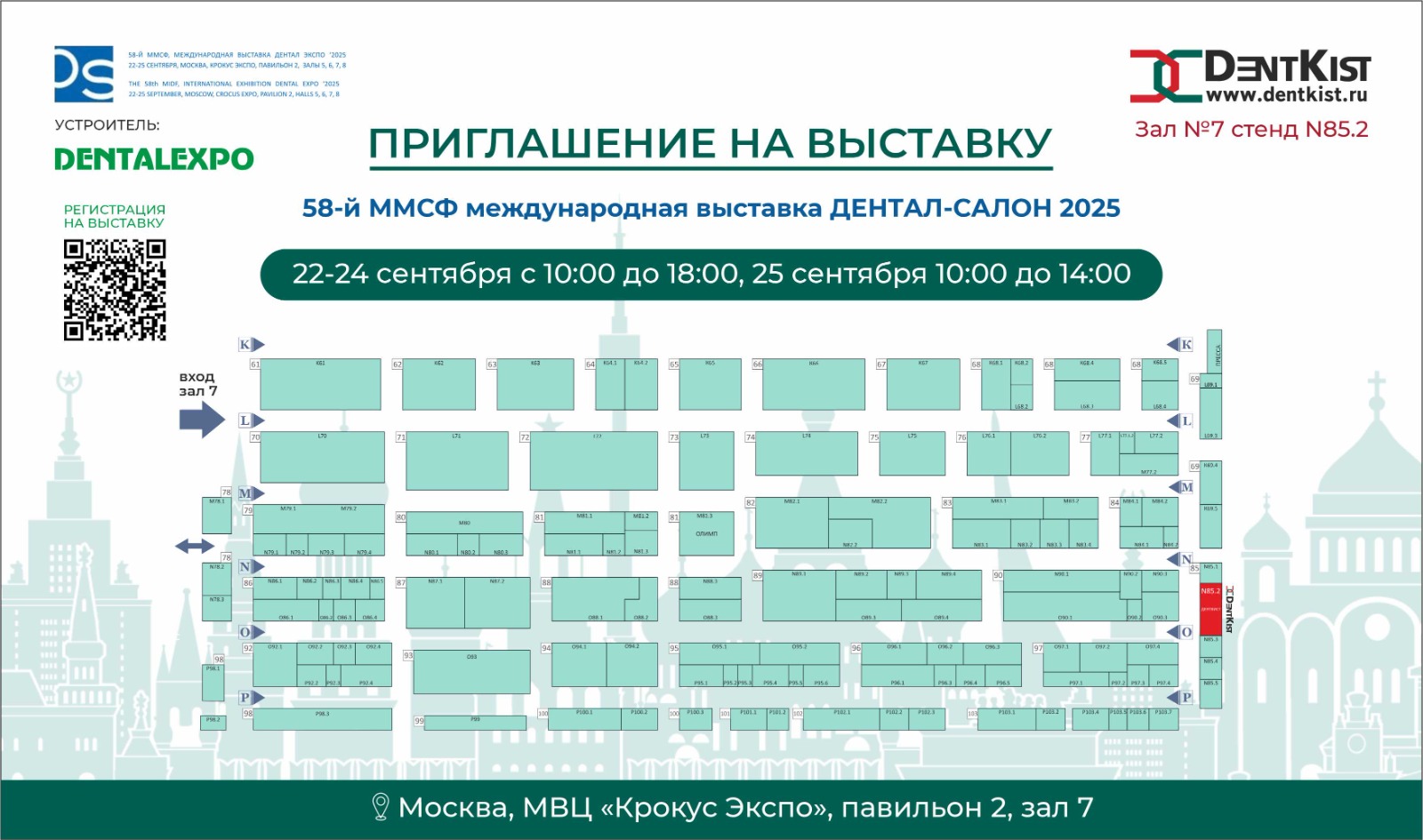 Компания «ДентКист» с радостью сообщает о своем участии в 58-м Московском международном стоматологическом форуме и выставке «Дентал-Экспо 2025», которые пройдут с 22 по 25 сентября 2025 года в Москве, в МВЦ «Крокус Экспо», павильон 2.